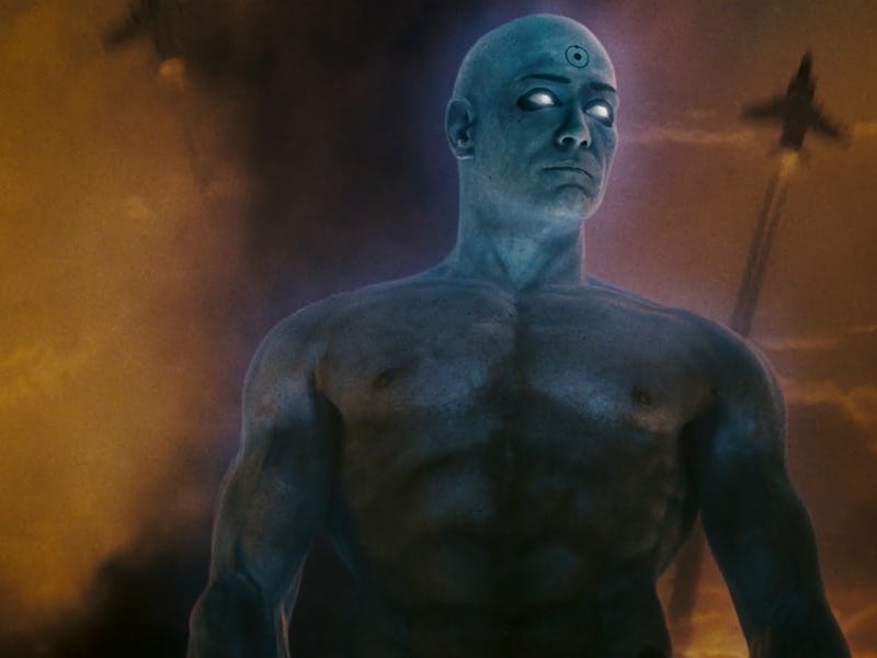 Of the very few problems in Alan Moore and Dave Gibbons’ Watchmen original comic is that it didn’t make any real use of Manhattan’s complex grasp of time. Yes, there is his iconic, esoteric narration, but nothing in the comic shows any consequence for that power. Heck, the comic shows Manhattan’s understanding of time is what makes him passive.