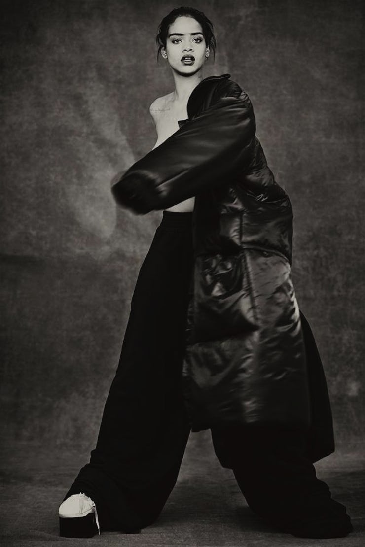 Travi$ Scott’s Rodeo was a good musical example of When Post-Kanye Goes Wrong, for the age of Yeezus — he played Kid Cudi to Yeezus’ 808s and Heartbreak and unleashed a bloated and pretentious psuedo-trap opus. But yesterday, with the unveiling of the album art and official announcement of her long-awaited new album (executive produced by Kanye) at the Mama Gallery in LA, $cott’s current flame Rihanna embraced ‘Ye-esque grandiosity herself.
