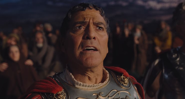 Earlier this year in an interview with The Hollywood Reporter, composer Carter Burwell explained “It’s a musical comedy that takes place on a Hollywood backlot, so you pass through all these pictures that are in production there.” We spied a Busby Berkeley-type musical with Johansson, an On the Town Navy dance number with Tatum, a World War II movie with what looks like a Nazi U-boat, and a Roman historical epic starring Clooney’s bumbling Baird Whitlock.