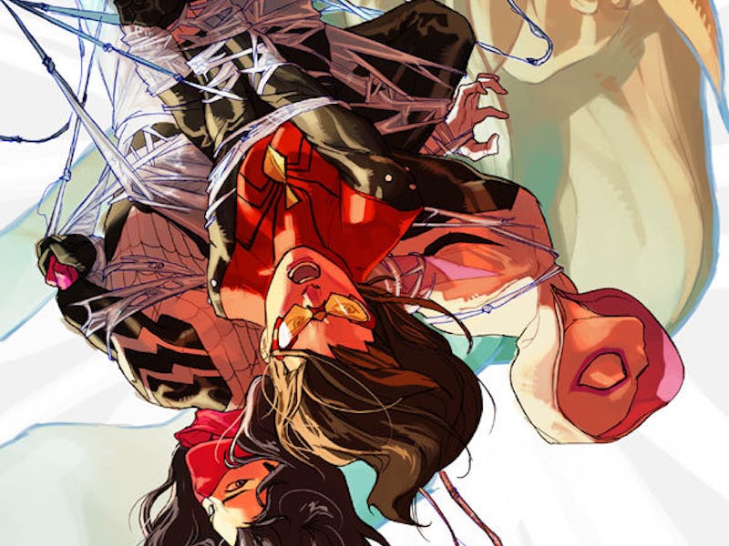 Following the events of Spider-Verse, Silk (Cindy Moon) and Jessica Drew (Spider-Woman) find themselves in Gwen Stacy’s universe and will team up with her in the new series, Spider-Women, its first issue slated for 2016.