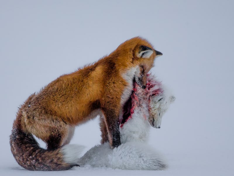 A Canadian physician and photographer caught a surprising scene on a trip to Wapusk National Park near Churchill, Manitoba — the aftermath of a deadly fight between a red fox and an Arctic fox. Now, the rare photograph has earned Don Gutoski the top prize at the annual Wildlife Photographer of the Year contest.