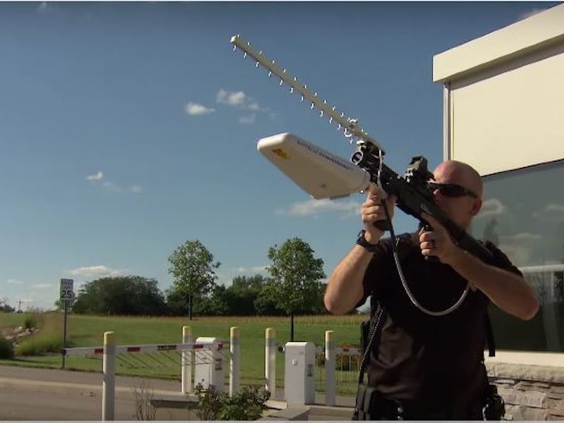 The Drone Defender joins a host of new technologies that government agencies are evaluating to combat commercial or consumer drones, which can put planes at risk or drop contraband over prison walls. But don’t expect to get your civilian mitts on a Drone Defender — jamming radio signals is a federal offense enforced by the Federal Communications Commission.