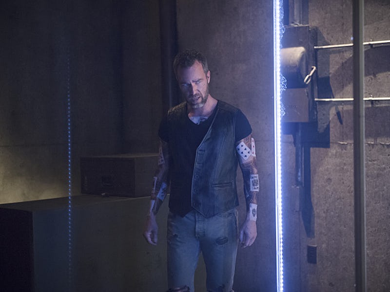 In the upcoming episode “Restoration,” Oliver will do battle with Double Down (played by J.R. Bourne), a metahuman who can throw razor-sharp playing cards peeled from the tattoos on his body.