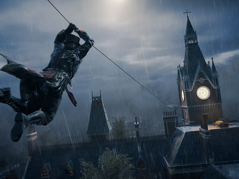 The most unique addition to the gear roster is the rope launcher, mounted on the wrists of both Jacob and Evie Frye next to the traditional hidden blade. It allows both of the characters to scale buildings with ease and traverse the city of London like a steampunk Spiderman. Everyone thinks it’s cool.