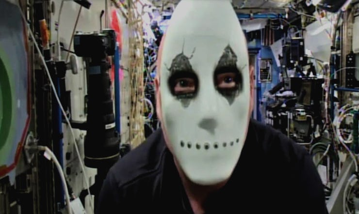 While Kelly’s mask isn’t as iconic as say, Halloween’s Michael Myers or Scream’s Ghostface, we definitely wouldn’t want to run into anyone wearing this mask in zero gravity (or on Earth, for that matter). And the video certainly brings to mind Alien’s terrifying tagline: “In space, no one can hear you scream.”