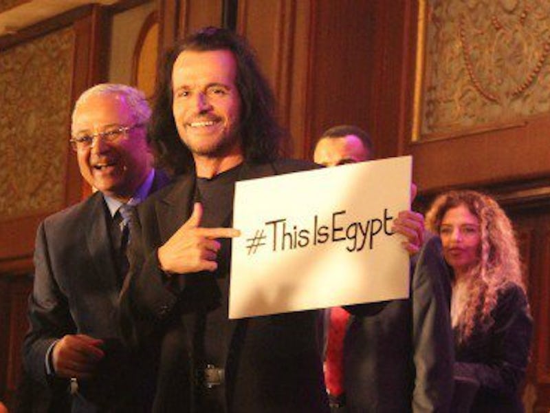 Over the past weekend, Greek-American musician and New Age hater Yanni played a pair of concerts in Egypt at the site of the ancient pyramids and Sphinx in Giza, on the fraying outskirts of Cairo. The 60-year old, accompanied by a 45-member orchestra and incredibly elaborate fireworks display, received a standing ovation and spoke to an American astronaut mid-concert — as one does.