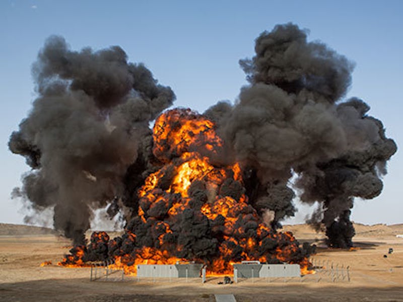 The explosion (again, so awesome) took place in Erfoud, Morocco, and consisted of a blast that used 8,419 liters of kerosene and 33 kilograms of powdered explosives. The 7.5-second explosion was equivalent to 68.47 metric tons of TNT. And, yeah, they were wise to nail it on the first take.