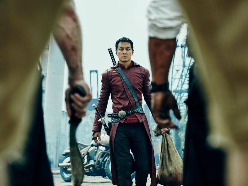 The dystopian future of Into the Badlands evokes the bygone antebellum, like Gone with the Wind except the soldiers have katanas. Sprawling plantations tended by slaves (of all ethnicities, but still, slaves) and mansions with architecture found below the Mason-Dixon line serve as backdrop for the AMC series. But Sunny, the hero of Into the Badlands, is looking west atop the walls that border his world. Played by famed Hong Kong actor Daniel Wu, Sunny wishes for freedom and a better life where the ruthless Barons cannot reach.