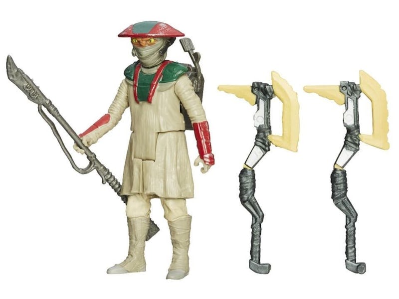 British film site Empire released the first look at a character called Constable Zuvio from The Force Awakens. We got our real first look at the character on Force Friday when action figures for the new character were released. We didn’t know much about him then, and we don’t know much about him now, other than he looks like one of those hairless Egyptian cats wedged into a Sharkticon outfit.
