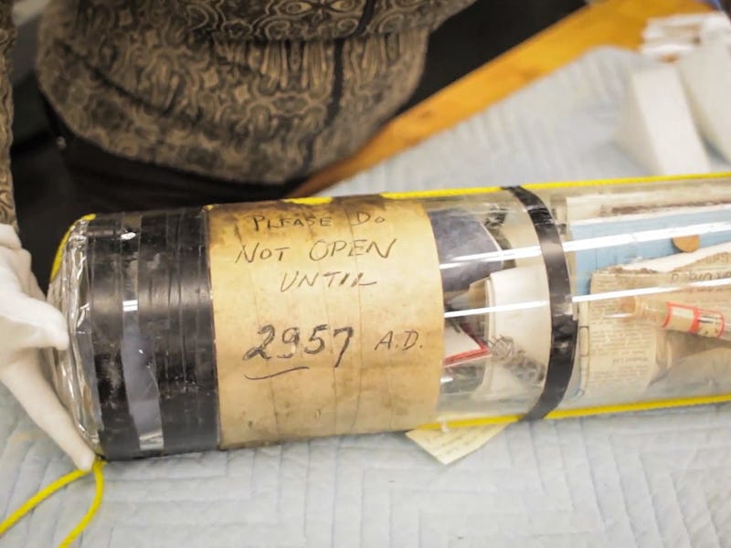 There are strict instructions on the capsule that it is not to be opened until 2957. We have decided to follow the wishes of the original makers and not open it,” Deborah Douglas, director of collections for the MIT Museum, tells Inverse in an email.