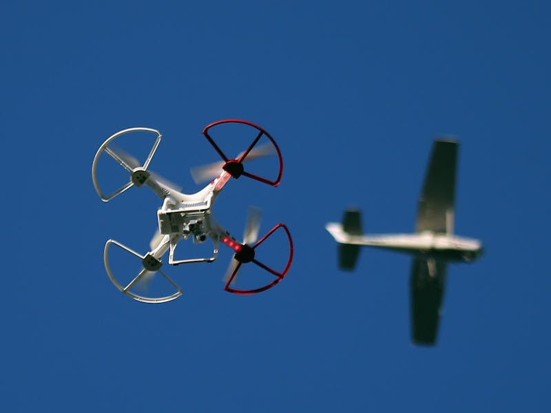 “We need to recognize the dangers that toy drone pose to manned airspace,” W. Hulsey Smith, CEO of aerospace and defense tech company Aero Kinetics, tells Inverse. Smith and Freddie L. Main III, an Aero Kinetics mechanical engineer, believe that collisions should be treated as an inevitability. “Statistically, I would say it’s a certainty,” Smith says, citing the explosive growth of the civilian drone industry (estimates of 200,000 drones a month and the FAA’s prediction of a million drones for the 2015 holiday season).