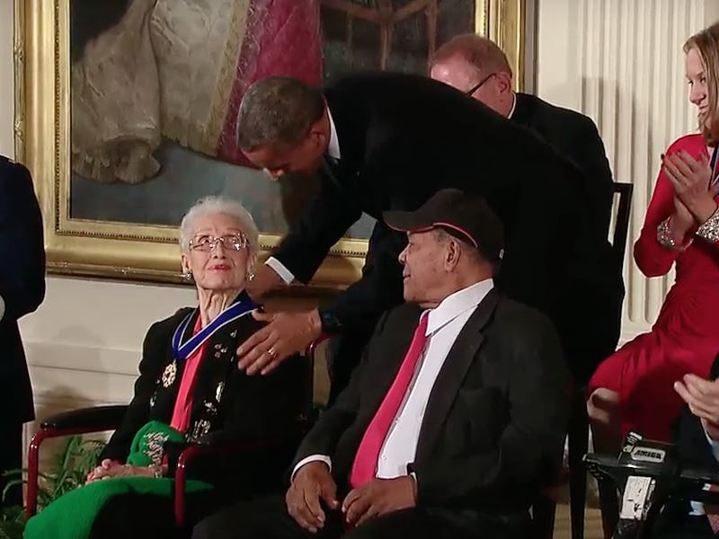 Obama presents NASA mathematician Katherine Johnson with the Presidential Medal of Freedom.