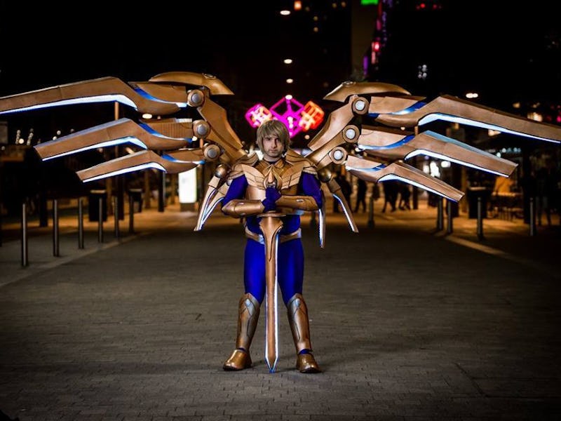 Not so with artist Elmins Cosplay, who undermines subtlety in all forms. He showed up to the LoL World Championship Quarterfinals in London with his tribute to character Aether Wing Kayle, which drew mouths agape with its sprawling set of animatronic wings.