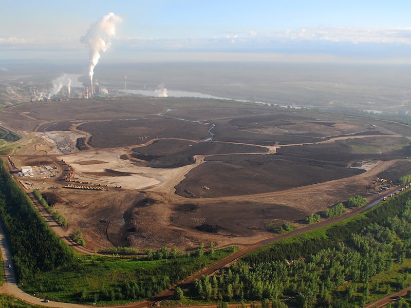 The Syncrude oil sands site, on April 27, 2015 outside of Fort McMurray, Canada. Fort McMurray is currently coping with an economic downturn as a result of low oil prices and most of the layoffs have been impacting the transient workforce. Canada's oil and gas industry is expected to lose 37 percent of its revenues in 2015.