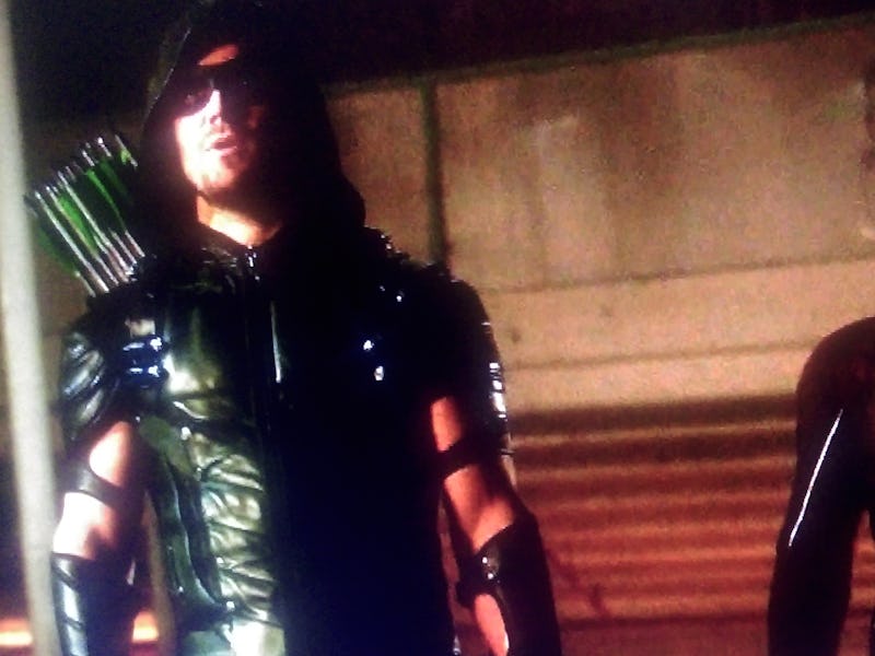 Oliver plays with a boy he has learned is his son, on the CW show "Arrow."