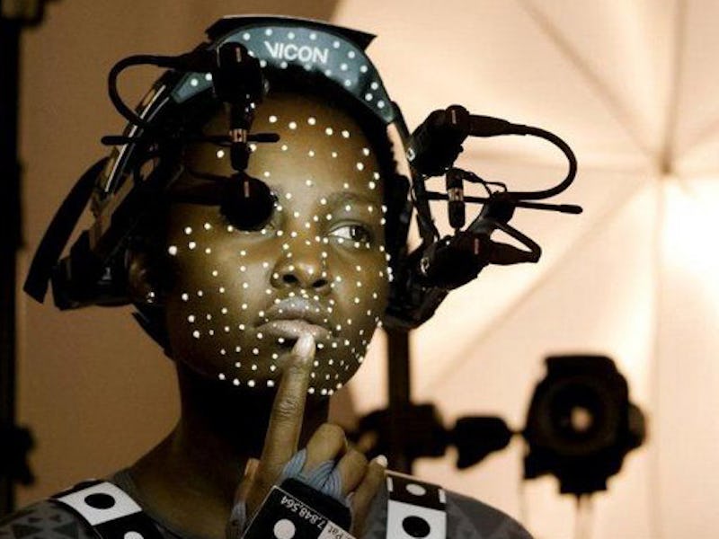 Lupita Nyong'o plays the fully CGI character Maz Kanata, seen at the bottom left.