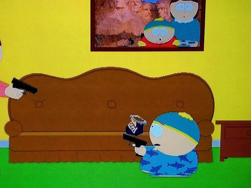 Everybody at the gun show pulls out a gun...on Comedy Central's "South Park."