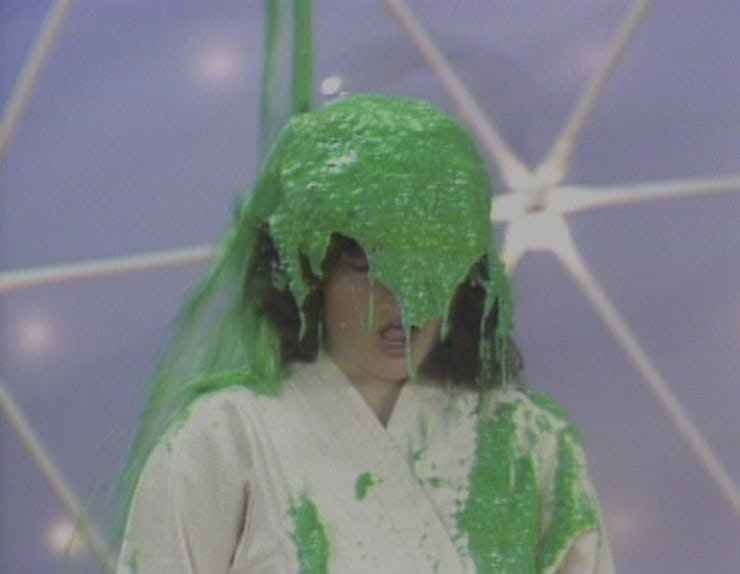 Her answer: vanilla pudding. Sanders explained it has always just been vanilla pudding with green food coloring. However, MTV has gone on to further explain that her experience only informed her of one particular slime mixture, with other concoctions including oatmeal, Jell-O and even baby shampoo. Somehow, knowing that green smile isn’t made of more noxious chemicals still doesn’t make it look all that inviting.
