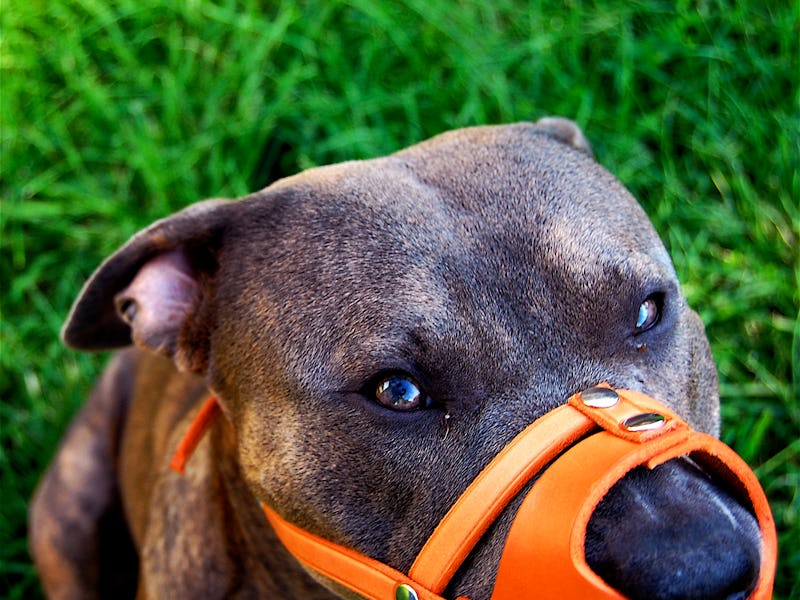 The sentence for being a well-mannered pit bull in England is never leaving the house without a leash and muzzle.