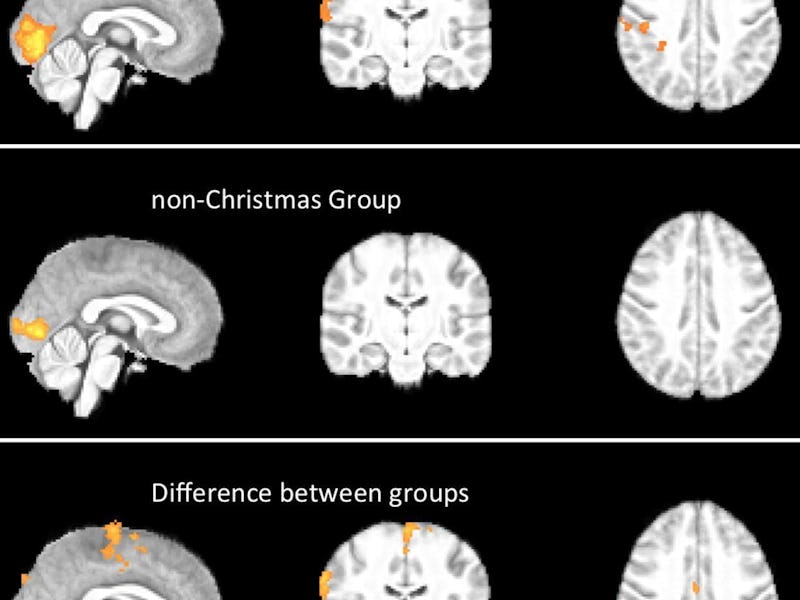 Compiling the results of the scans, the team found five parts of the brain that were more active in people who celebrate Christmas. These areas, the authors write, are associated with spirituality, somatic senses, and the ability to recognize facial emotions. “Collectively,” they write, “these cortical areas possibly constitute the neuronal correlate of the Christmas spirit in the human brain.”