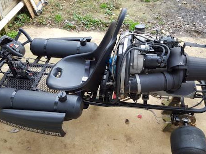 Kettleman writes: “I have not conducted extensive trials with the craft as of yet, yet preliminary findings show speeds in excess of 100 mph tracked via satellite GPS,” Kettleman writes. “The kart is limited by its braking system and lack of suspension. This kart was primarily designed for fun, marketing, and getting individuals acclimated with gas turbine engines. If desired I can build a more active chassis with progressive independent suspension, 4 wheel disc brakes and larger power-plant if need.”
