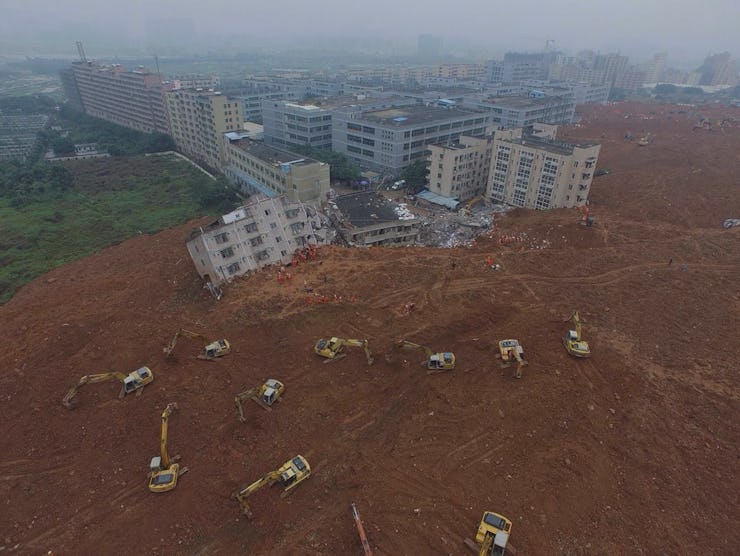 The South China Morning Post reports the pile that collapsed apparently contained at least a 1,000,000 square meters of waste materials, and was destabilized by heavy rains.