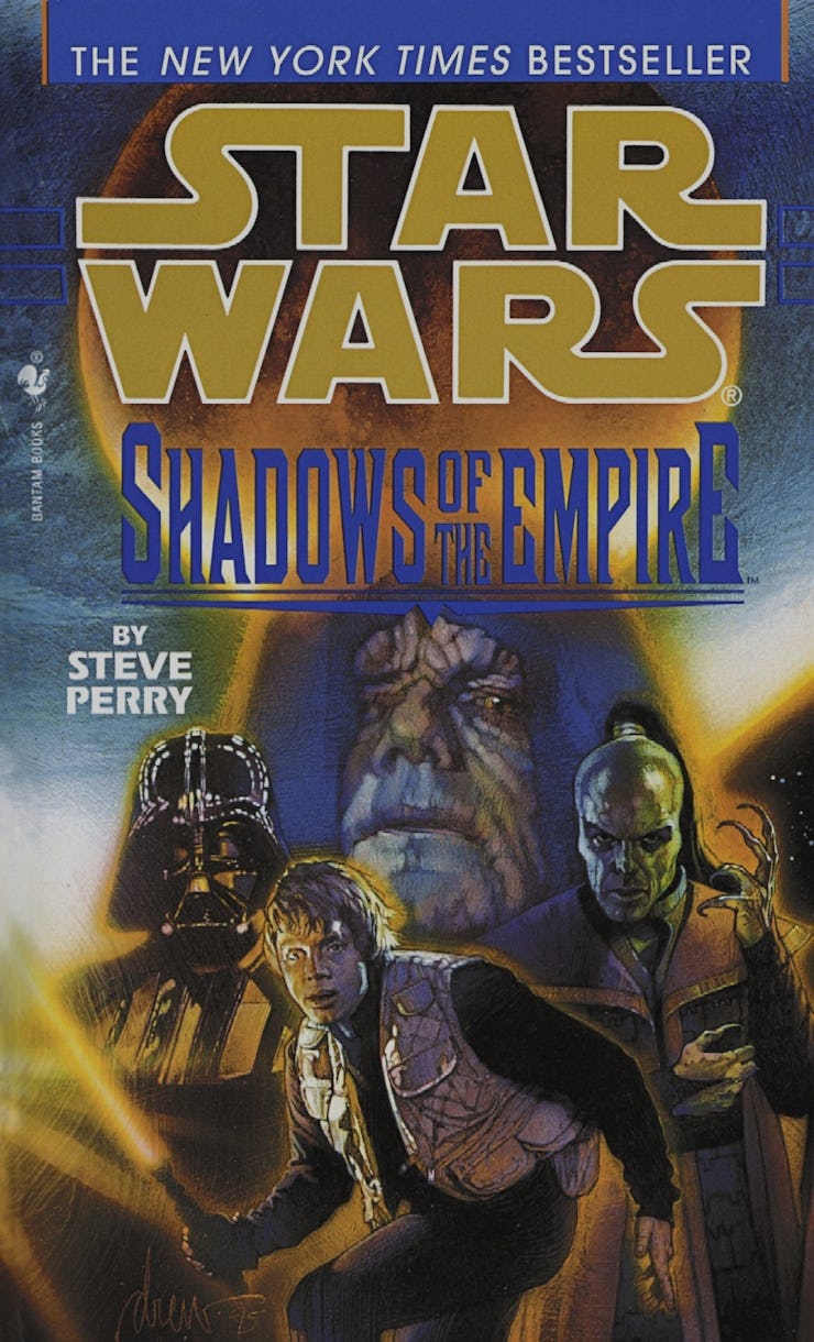 “Shadows of the Empire illuminates the shadowy outlines of a criminal conspiracy that exists in the background of the events in the movies, ruled by a character new to us. Prince Xizor is a mastermind of evil who dares to oppose one of the best-known fictional villains of all time: Darth Vader. The story involves all the featured Star Wars movie characters, plus Emperor Palpatine and, of course, Lord Vader himself.”
