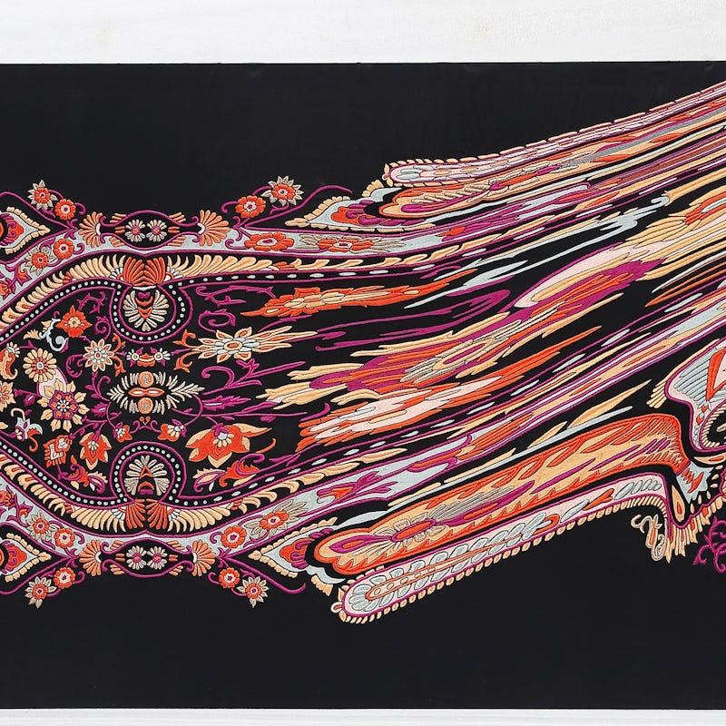 “I explore ancient traditions, cults and cultures, I make my own research and as I communicate with it, I create art,” he says. “My carpets, installations, and embroideries are the result of this interplay. It is fascinating to observe the process of such an easy transformation of such ancient and stable objects.”