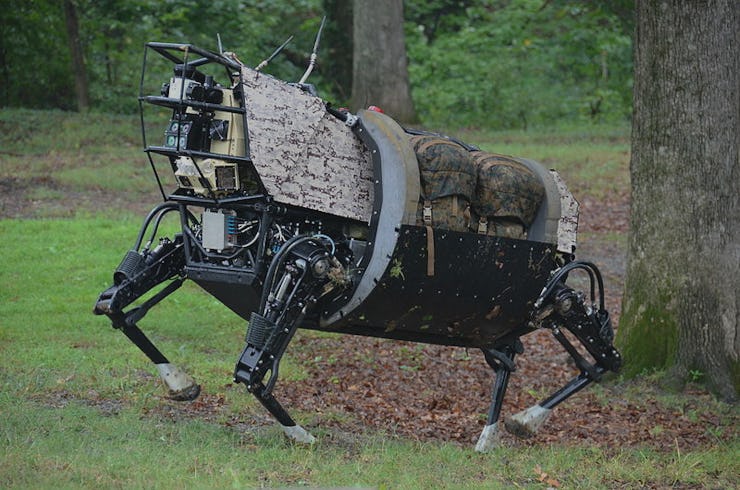 “The Mule,” as DARPA’s four-legged robotic beast is known because of its wide, squat stance, is a favorite at trade shows and familiar to the enlisted. Get it out of the lab, though, and it’s just too damn noisy to be much good in a fight. Each two million dollar robot can lug up to 400 pounds of equipment, but its gas-powered engine yowled like a lawnmower.
