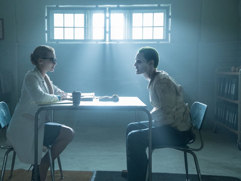 But a few pictures seem to indicate that the film will double as an origin story for Harley Quinn, the Joker’s would-be lady love. Most notably, it seems clear in this shot of Harley (Margot Robbie) and the Joker (Jared Leto), where it looks like she’s still Dr. Harleen Quinzel and he’s her patient in Arkham Asylum. Ah, young love.