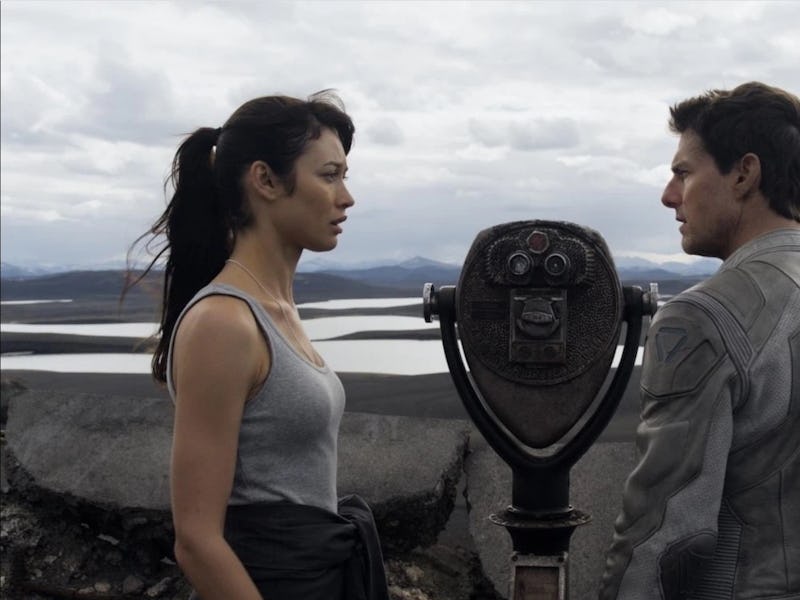 Brace yourself, but not all goes as planned. Jack can’t shake memories of a prewar existence he shouldn’t have, and a UFO falls out of the sky to reveal Julia (Olga Kurylenko), who claims to be a NASA astronaut who’s been in stasis since the war began in the futuristic year of 2017. Then the Tom Cruise clones start showing up, and things get weirder from there.