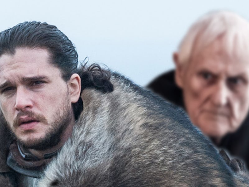 The passage, which was pointed out by the great Thrones scholar BryndenBFish on Twitter, comes from the fifth book in George R. R. Martin’s Song of Ice and Fire series, A Dance With Dragons, which came out in 2011. Jon Snow is recalling the words Maester Aemon Targaryen had told him to help him prepare to be the lord commander of the Night’s Watch. Unbeknownst to either of them, Aemon and Jon are related, as the old maester is Jon’s great-great-great-uncle. (In the HBO series, he’s just a great-great-uncle, as the showrunners removed a generation of Targaryens to streamline things a bit.)
