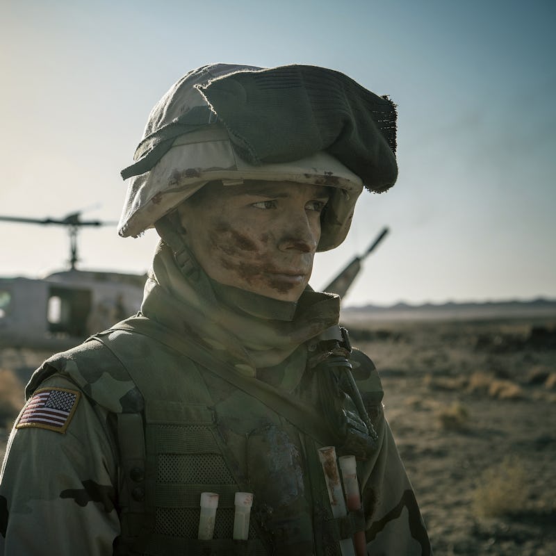 But Cherry keeps afloat thanks to its leads. Holland and Bravo are note-perfect as avatars of lost innocence. Their porcelain babyfaces make them resemble children playing a demented game of house. Behold Bravo, an ex-Nickelodeon star with a white ribbon on her neck, saying "Fuck me" into the camera as Holland furiously masturbates in an Army portapotty. The two show range and depth beyond their years as they embody the deteriorating corruption of youth that war and addictions inflict. Cherry may be set in a post-9/11 America and written by an elder millennial (Walker is 35-years-old), but the movie is unmistakably for Gen Z who are still forced to live with the consequences of the financial collapse and America's ceaseless presence in the Middle East.