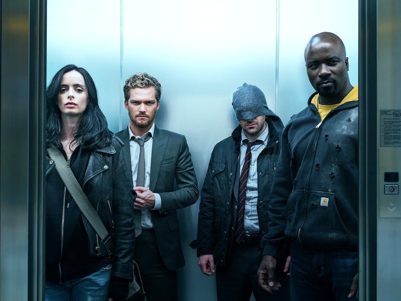 Mike Colter, Krysten Ritter, and Charlie Cox in The Defenders.