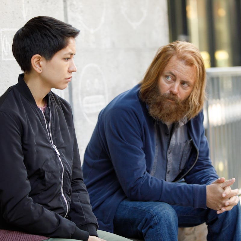 Devs takes place in modern-day (or perhaps near-future) San Francisco. Homelessness is rampant, tech companies rule, and the most powerful among them is Amaya. Run by its founder and CEO Forest (Nick Offerman), Amaya is a powerful but pretty boring quantum computing tech giant with a fascinating secret: A mysterious department named Devs has a select team working on something top secret (so secret FX made us promise not to reveal any details in this review).