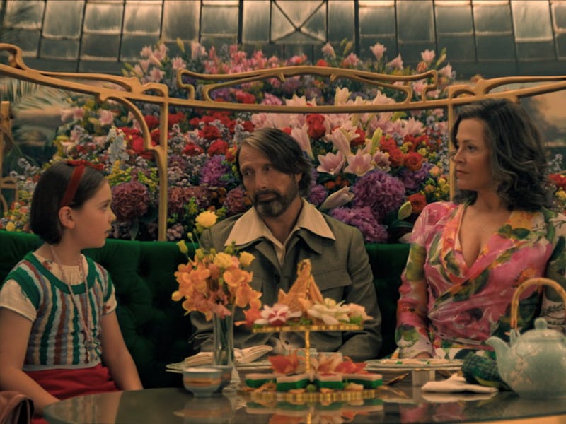 “I remember Mads coming in, and he was trying on the different outfits, and he’s like, ‘I don’t know who this guy is… It seems like a different character would wear all of these outfits,’” Fuller recalls. And on some level, that’s the point: We don’t know his character’s name, much less his true intentions. He’s gruff, he’s malleable — but to Aurora, the little girl who asks him to slay the monster under her bed, he’s also trustworthy.