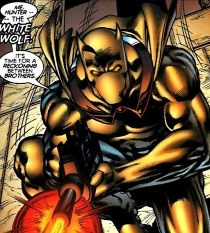 T'Challa vehemently opposed the purpose of the Hatut Zeraze, and disbanded them when he became king, leaving Hunter to convert the force to mercenaries. His costume is similar to Black Panther's, with the same protective qualities, the only difference being the color.