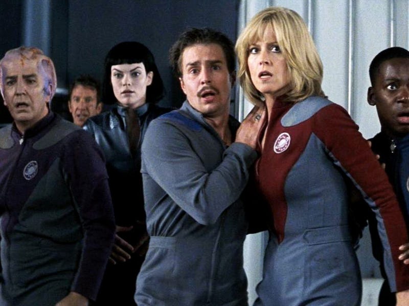 Unappreciated in its time, Galaxy Quest is a Star Trek satire that wears its love for the genre on the sleeve of its jumpsuit. The movie centers on a bunch of washed-up actors best-known for playing the crew of a Trek-inspired show that shares its title with the movie. After syndicated episodes are beamed into space, some actual aliens head to Earth and enlist the Galaxy Quest team to save them from a genocidal intergalactic warlord.