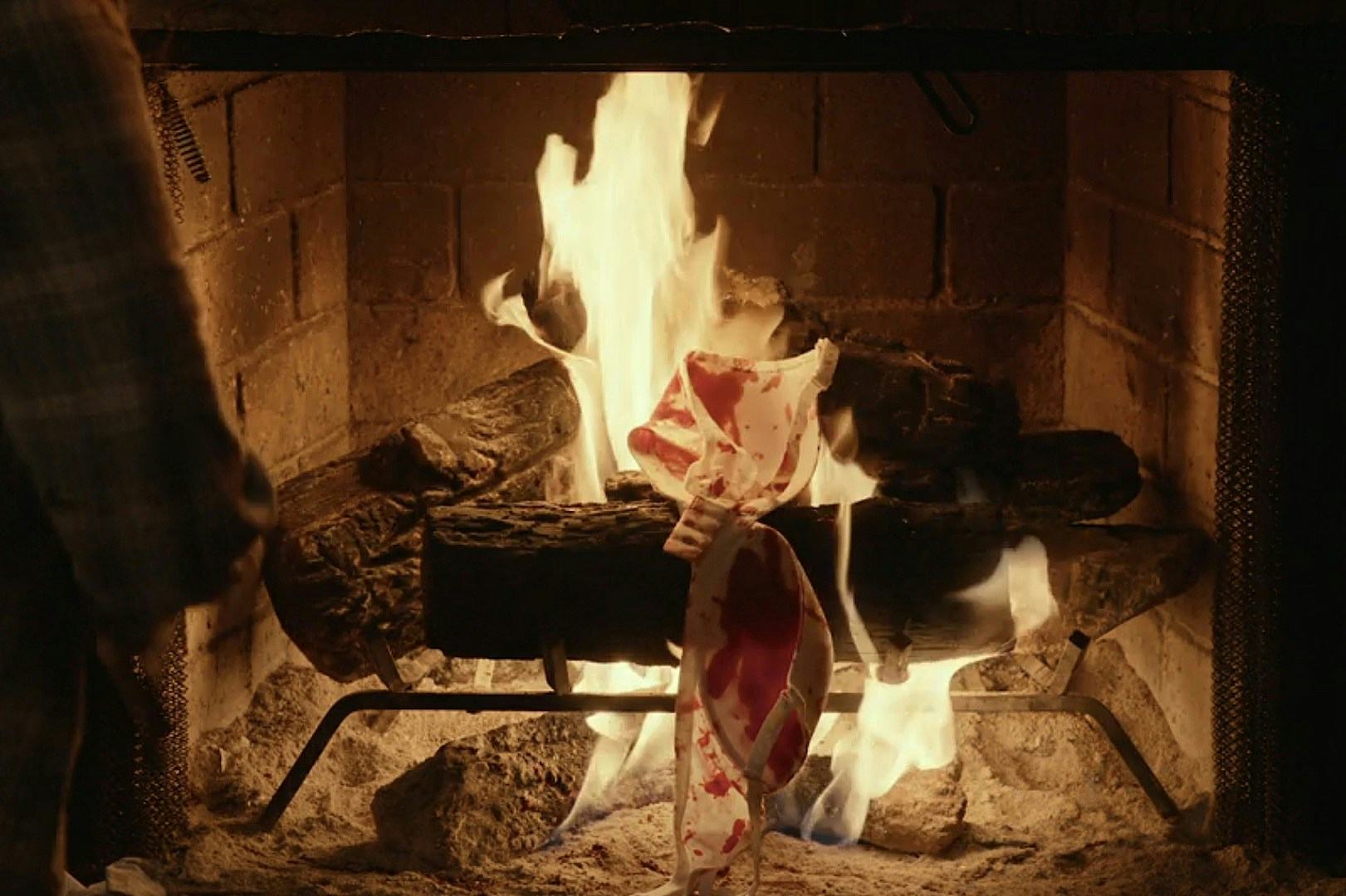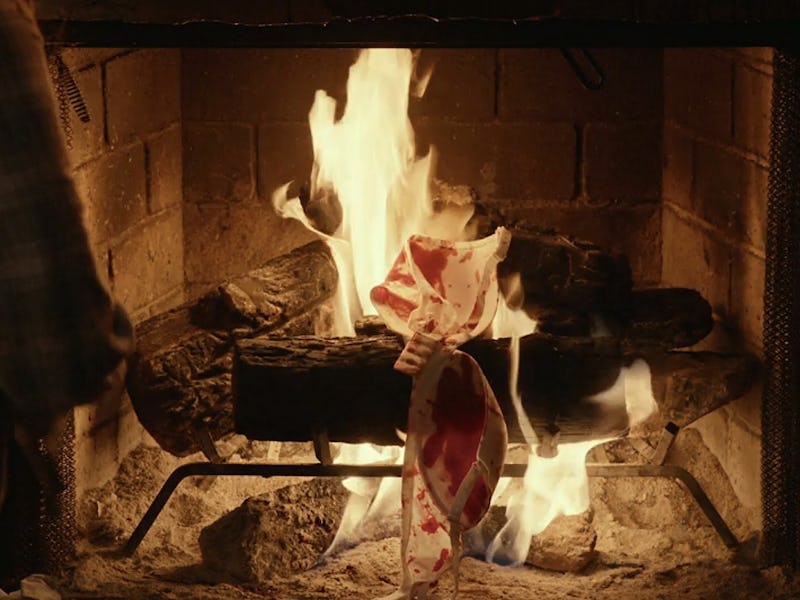 Casper Kelly’s Adult Swim Yule Log begins exactly how you’d expect: close-up footage of a roaring fire with quiet Christmas movies playing in the background. But that only lasts about two minutes before the frame is filled by a landlady cleaning a rental unit before the home is invaded by two strangers who murder her. That’s when it becomes clear that this isn’t a Yule Log video, it’s the cold open of a slasher movie.