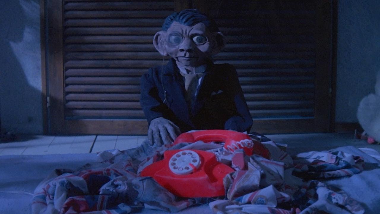 The film throws in another bonkers possibility when Joey stumbles across a ventriloquist’s doll in a neglected next-door property that looks eerily similar to the Bates’ home in Psycho. Upon springing to life, the sharp-suited, monocled figure named Fletcher claims he’s behind the beyond-the-grave chats, although his motive remains a mystery. Even an origin story handily played out on a black-and-white TV that reveals he was created by a 1920s magician who dealt in the dark arts fails to shed any light on the matter.
