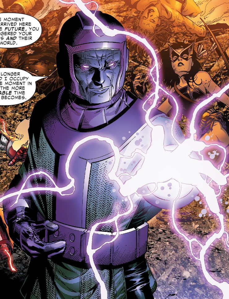 Hopping through time, Kang first tries (and fails) to conquer Earth, but he's thwarted by the Avengers. When he's sent back to the future, he overshoots by a thousand years to discover a vulnerable Earth that is too easy for Kang to take over. But while the future belongs to Kang, it is a dying future, so he travels back in time to rule the 20th (and later 21st) century again and again to conquer an Earth that is fruitful and prosperous.