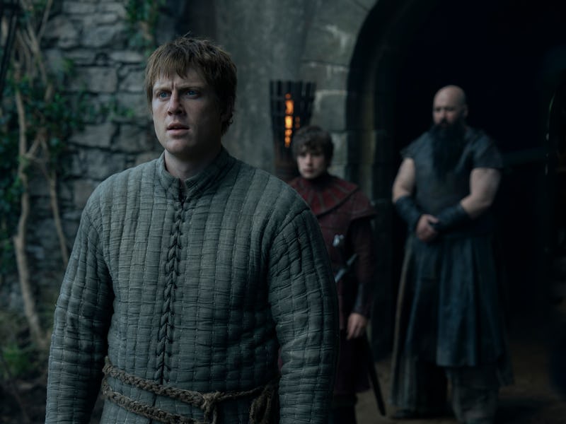 In Episode 4, Dunk finds himself participating in a trial of seven, and to do so, he must recruit six soldiers to fight alongside him. Dunk thinks he has Ser Steffon Fossoway on his side to recruit aid, but he’s betrayed when Steffon agrees to fight on the other side for the promise of being made a lord. With Aegon’s help, he manages to scrape together a few more allies, but it’s still not enough. Raymun Fossoway, Steffon’s “unripe” cousin, asks Dunk to knight him so he can fight too. After all, he says, any knight can make a knight.