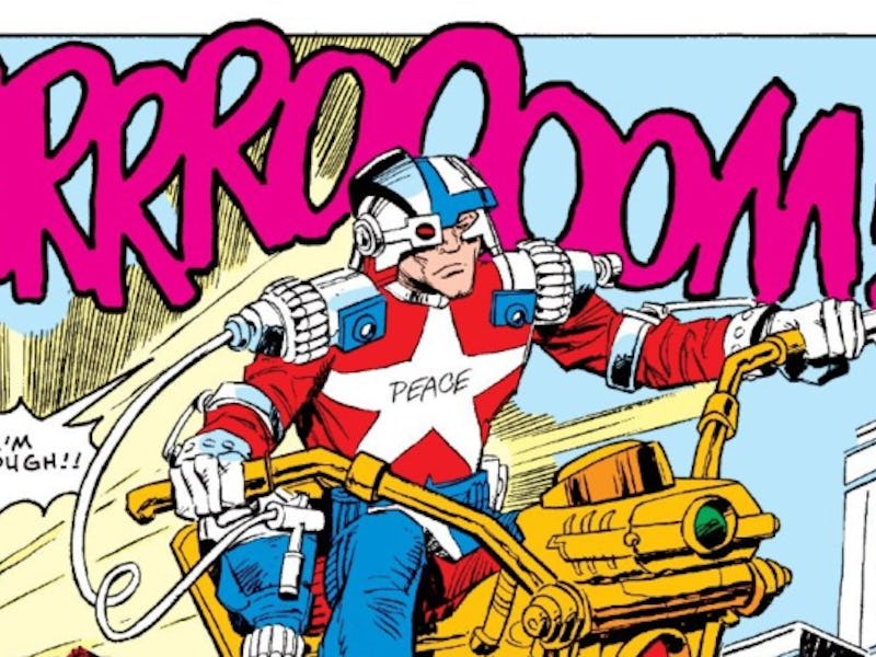 Reddit user NaiadoftheSea has theorized the likely candidate is Justice Peace, a member of the Time Variance Authority and basically Marvel’s answer to Judge Dredd. He first appeared in Thor #371, where he emerged from thin air on a mission to defeat Zaniac, only to get sidetracked by some jaywalkers. This, naturally, leads to Thor’s interference, but Justice Peace escapes by shooting a missile from his Hopsickle, the TVA version of a patrol bike.