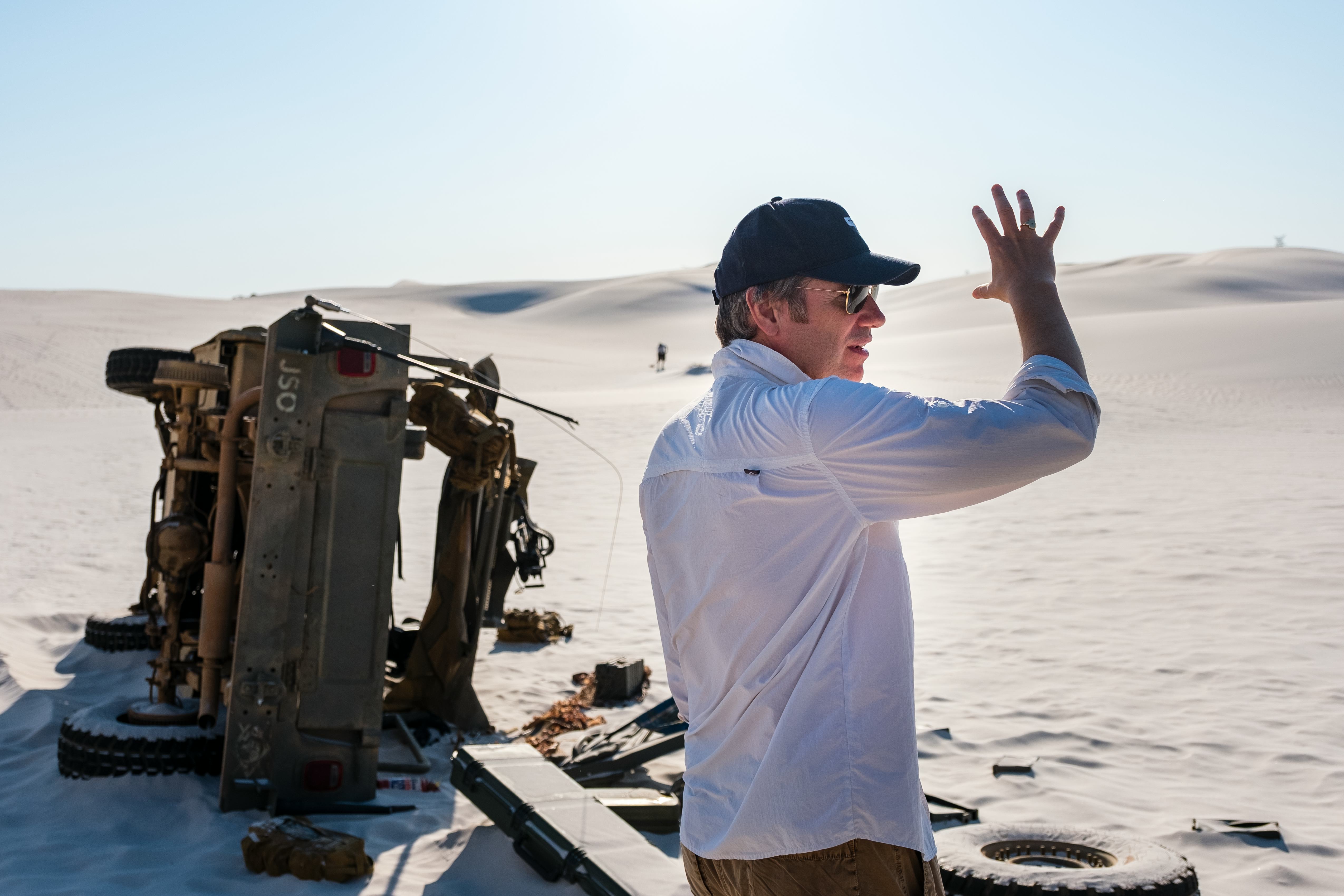 To achieve this effect early on, Anderson relied on the physical framing of the military unit’s Humvees, at first distancing characters from their surroundings through windshields and mounted guns, and later using contrasting angles to encase them within the vehicles, trapped like fish in a barrel. “I tried to alternate the really vast landscapes with a sense of claustrophobia,” he adds.