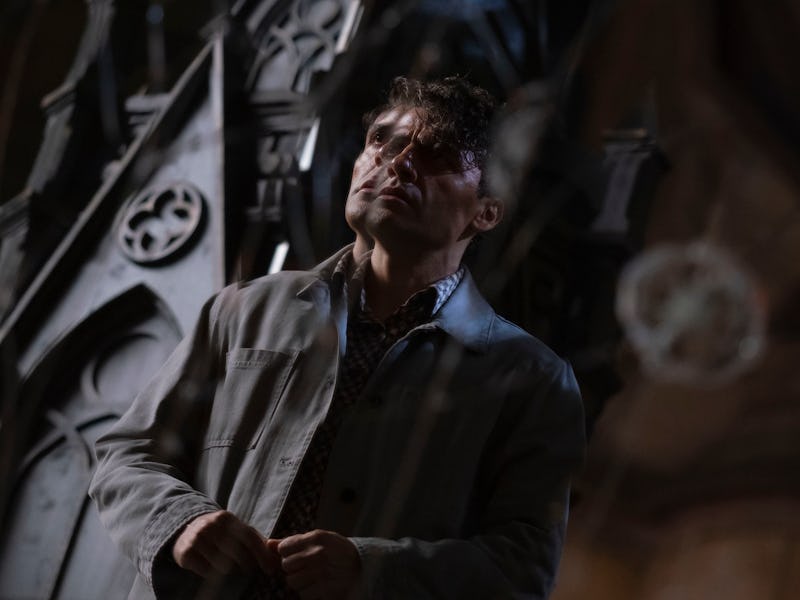 Mr. Knight (Oscar Isaac) talking to his own reflection in Marvel’s Moon Knight.