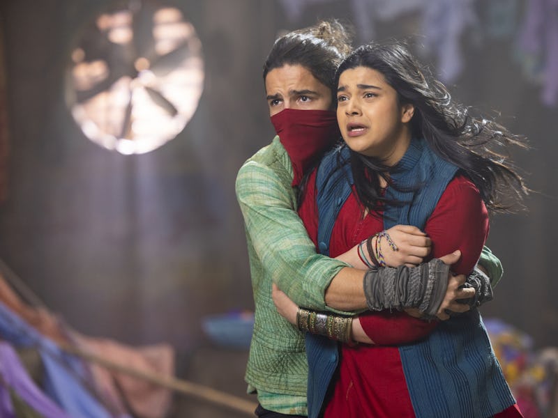 At the end of Ms. Marvel, Kamala Khan (Iman Vellani) is dealing with being a superhero and a high schooler. Just as she’s about to do some homework, Kamala’s mysterious bangles activate, flinging her into her closet.