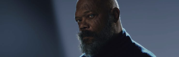 Past vs. Future — What’s most intriguing about Jackson in Secret Invasion is his bushy gray beard and the lack of his signature eyepatch. For starters, Fury has never looked this rough before. And with the eyepatch missing, the series opens up the possibility of Secret Invasion taking place during or after The Winter Soldier, the last time Fury was ever seen without it.