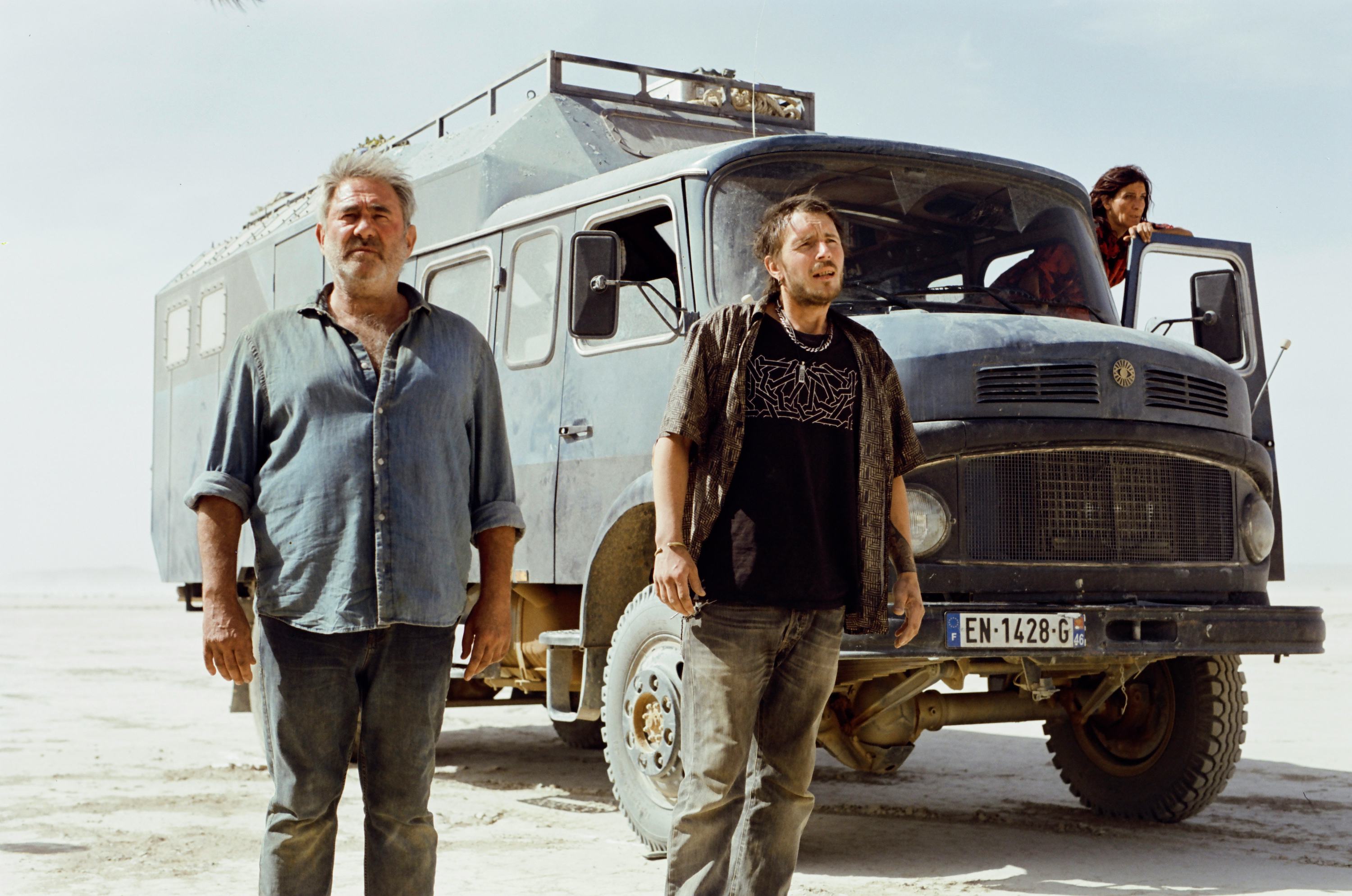 But their search — and the rave — is brought to a sudden halt when a group of soldiers arrives and orders the ravers to evacuate, in the wake of an escalation of armed conflict between two neighboring countries. Luis and Esteban at first obediently join the long line of cars being escorted by the armed soldiers away from the rave grounds, but when they see two vans breaking away from the masses, Luis instinctively starts to follow them. The hardcore ravers — Stef (Stefania Gadda), Jade (Jade Oukid), Tonin (Tonin Janvier), Bigui (Richard Bellamy), and Josh (Joshua Liam Henderson) — try to dissuade Luis and Esteban from following them, but eventually reveal that they’re headed to another rave deeper in the desert. Convinced that they may find Mar there, Luis and Esteban insist on following, and the ravers reluctantly agree to guide them. Thus, as tinny radio reports ominously warn of the world descending into WWIII, our strange, winding desert odyssey.