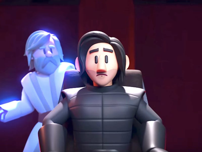 A video titled "The Cancelled STAR WARS Episode 9 Animated" from YouTube channel Mr Sunday Movies turns Trevorrow's script into an entertaining 5-minute claymation-style cartoon. The video covers most of the key story beats in Duel of the Fates, including (*deep breath*) Luke Skywalker's Force ghost haunting Kylo Ren, Kylo injuring his face and repairing it with metal, Rey stealing a Star Destroyer, the Resistance activating a secret beacon under Coruscant, an epic Coruscant battle, Hux committing suicide with Mace Windu's purple lightsaber, Chewbacca flying an X-Wing, and a whole lot more.