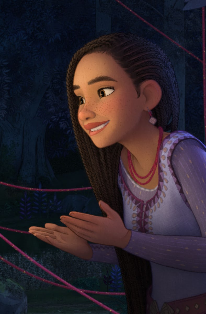 Wish is, of course, meant to serve as an homage — but at every turn, it conflates that responsibility with rote imitation. So many of its characters feel like regurgitations of past favorites: “Disney face” has been an issue as far back as Tangled, and it rears its head again here, too. Its ideas are occasionally intriguing, especially when it’s willing to confront the part that fear and failure play in our daily lives. But too quickly does it slip into a more traditional (and trite) battle of good against evil, or worse: a winking reference to a far superior Disney film.